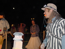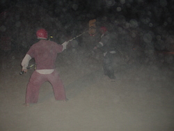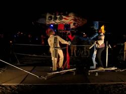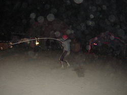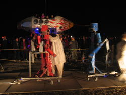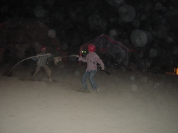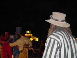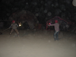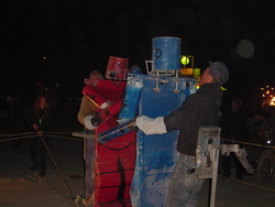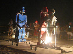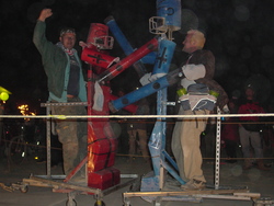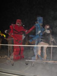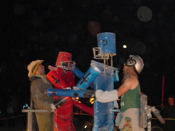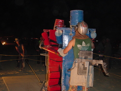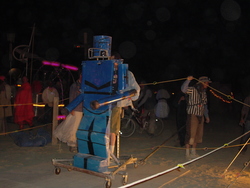 Wow. BM'04 was a great year for me, but very different from previous years. There was less art this year [1] (I'm under the impression that many of the big names were burnt out and needed a break), so the energy wasn't quite as powerful, and I had some things I needed to deal with, so it was much more a year of introspection and learning for me. I brought back my Rock'Em Sock'Em Robots this year, and they kicked ass. I had to make a bunch of modifications to them so they'd be stronger and survive another year, and they worked great. |