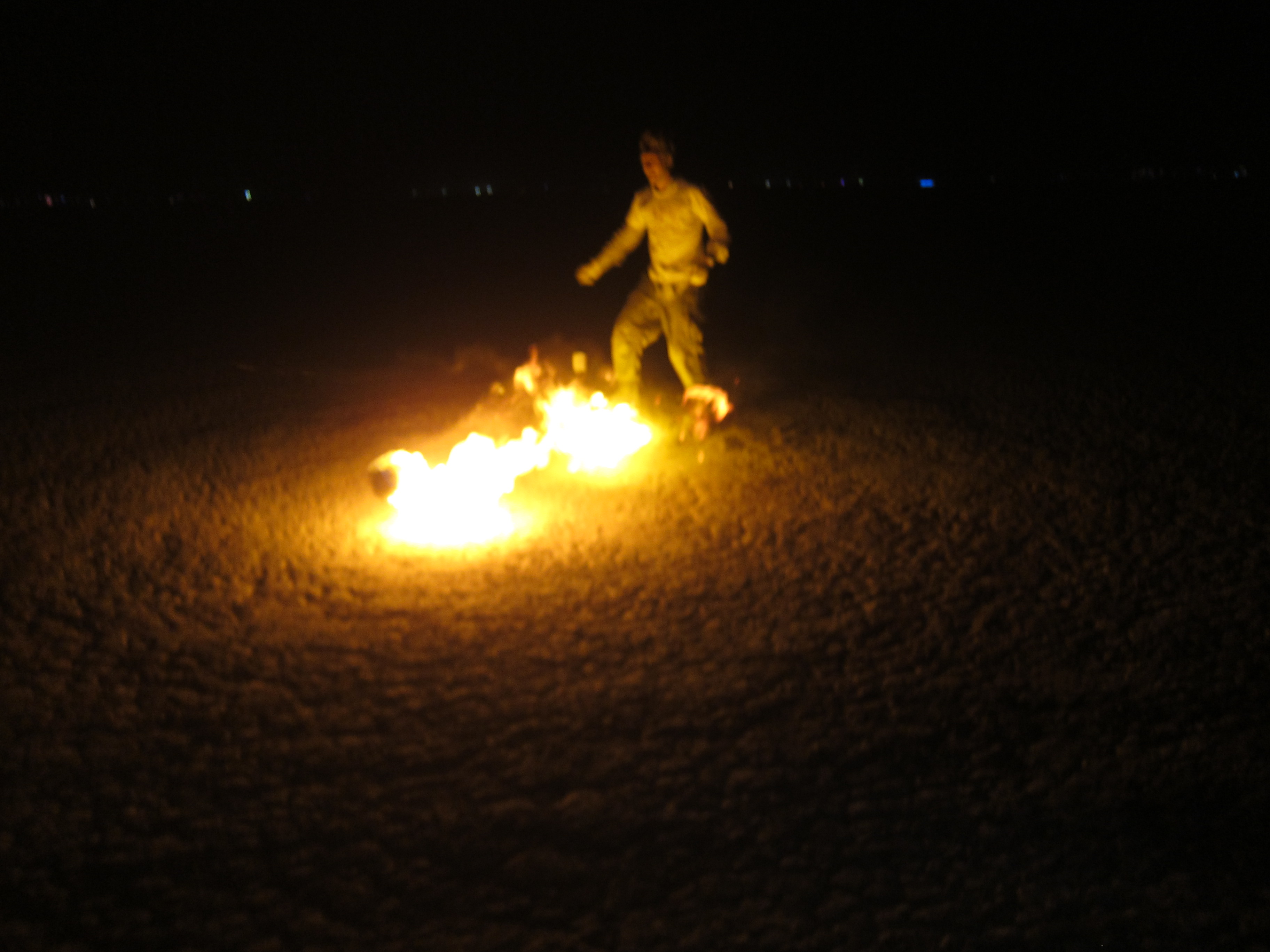 Note leg on fire.