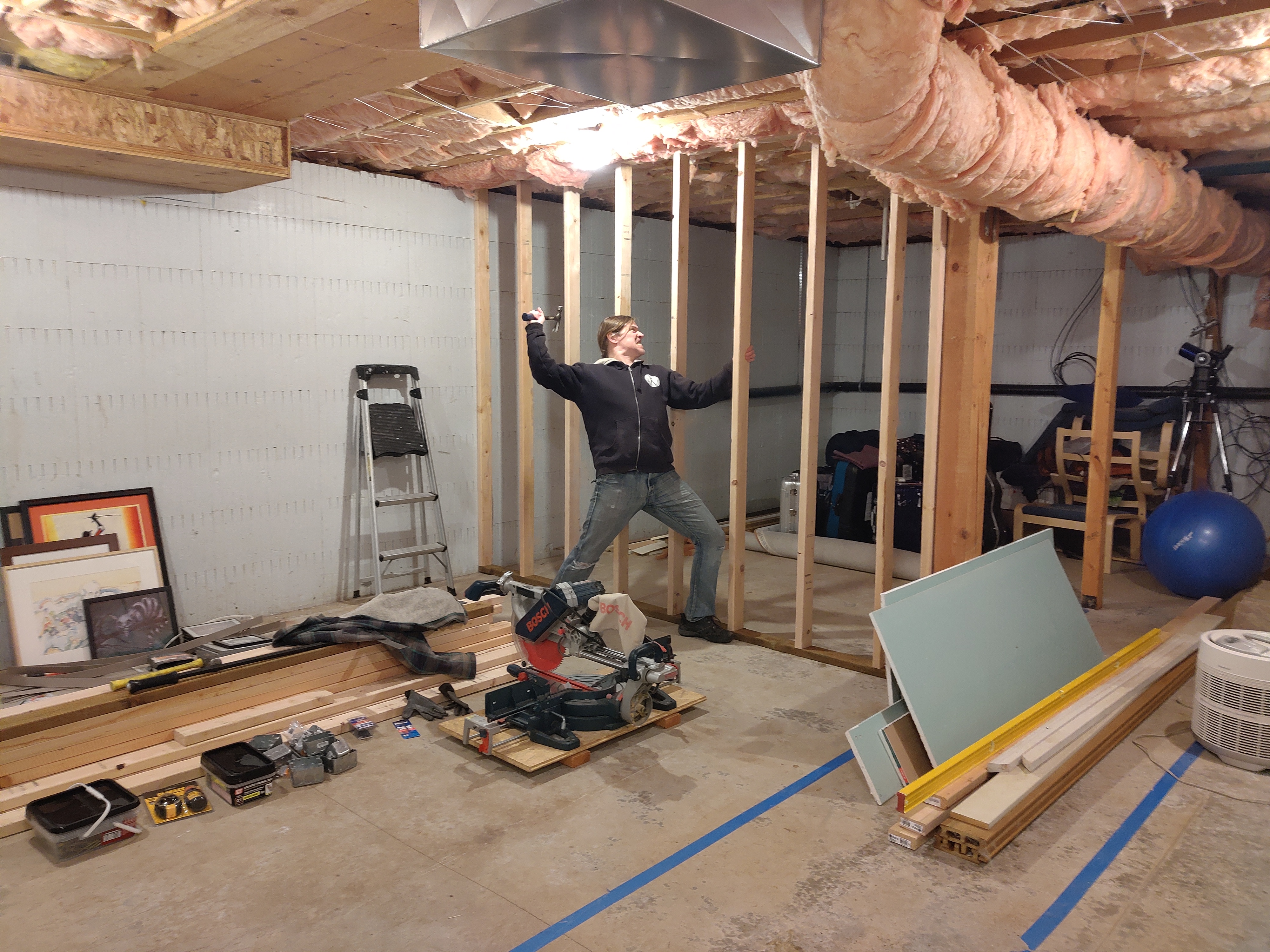 We start framing his downstairs